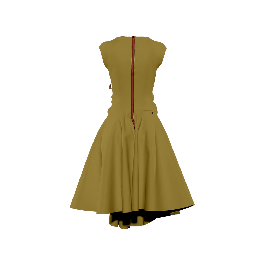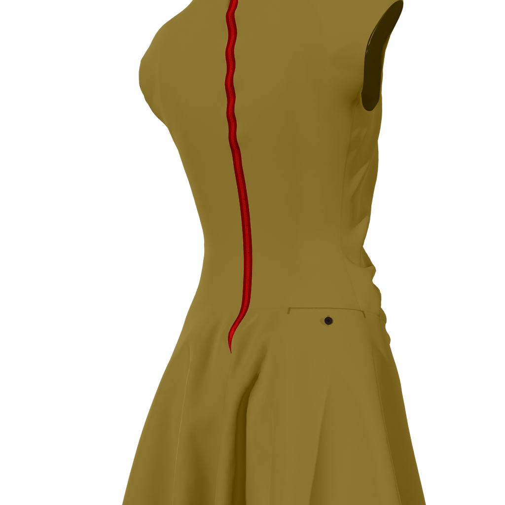 Robe évasée, buste étroit, décolleté horizontal, poches, coulisse élastique au côté, ruban et zip contrastés, Ourlet plongeant devant, Toile de soie stretch, Longueur de 122 à 126 cm, 500 gr, lavable à 30° en machine.